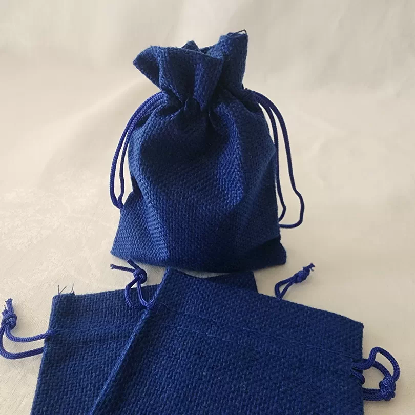 Deep Blue Burlap Pouch 14cmx9.5cm