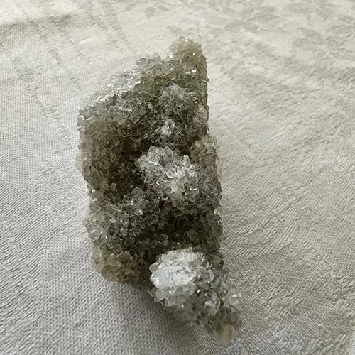 This Lovely Green Amethyst Druze comes from Brazil and has a soft grey-green colour with minimal matrix.