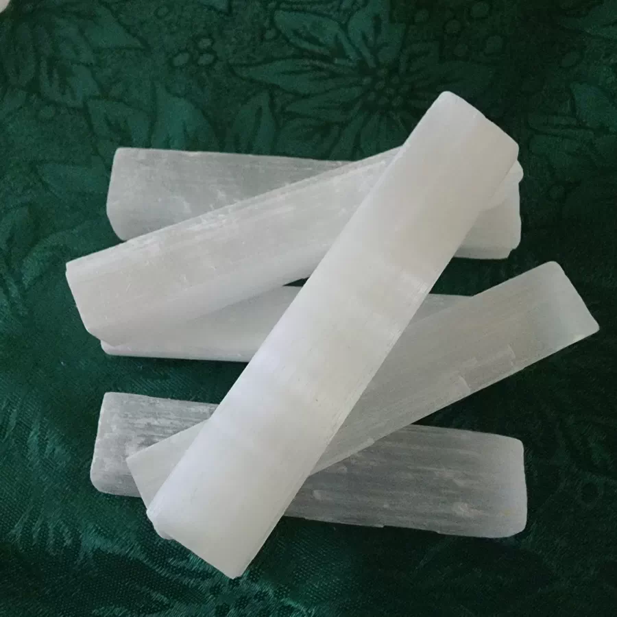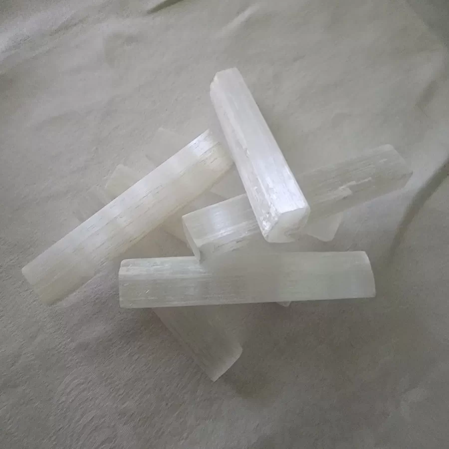 These rods have been cut straight and are very clean as Selenite is so soft a fingernail will mark it.