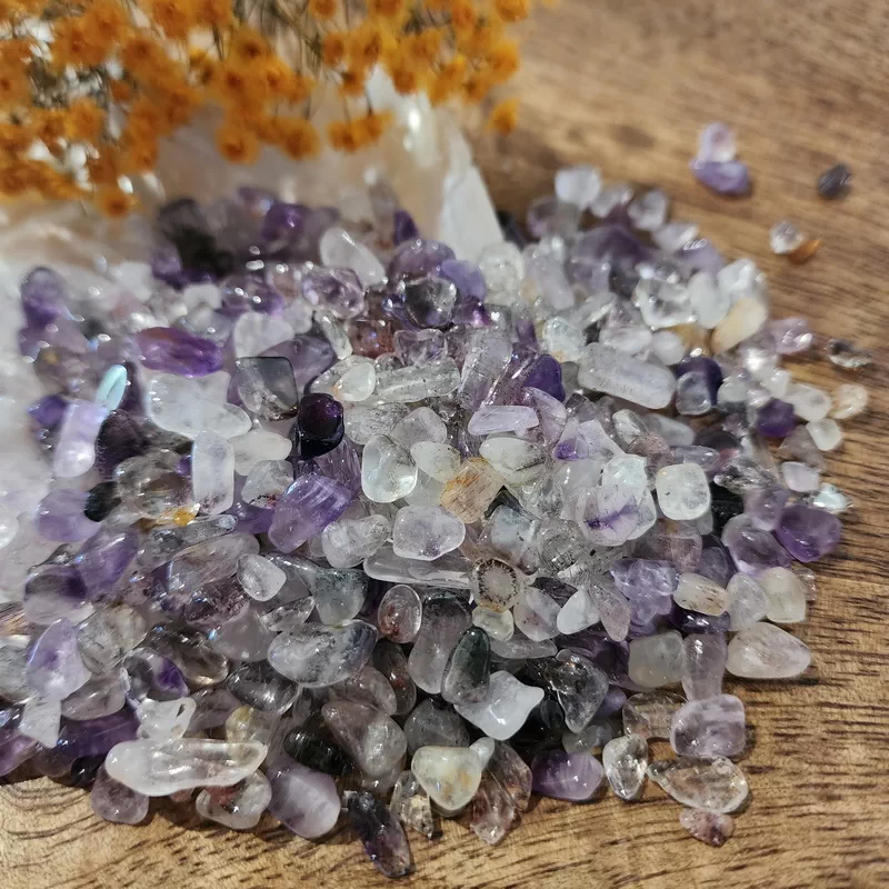 You will receive one of these Lovely parcels of various included gem pebble based on which one you chose. They are the usual chip like gem pebble and are great for a large range of creative projects or for a decorative inclusion to your home or plants. Glass display bottles are also available in a separate listing under this category. They are 10ml and the 100gm pack fills approx. 5 bottles give or take depending on the size of the chip.